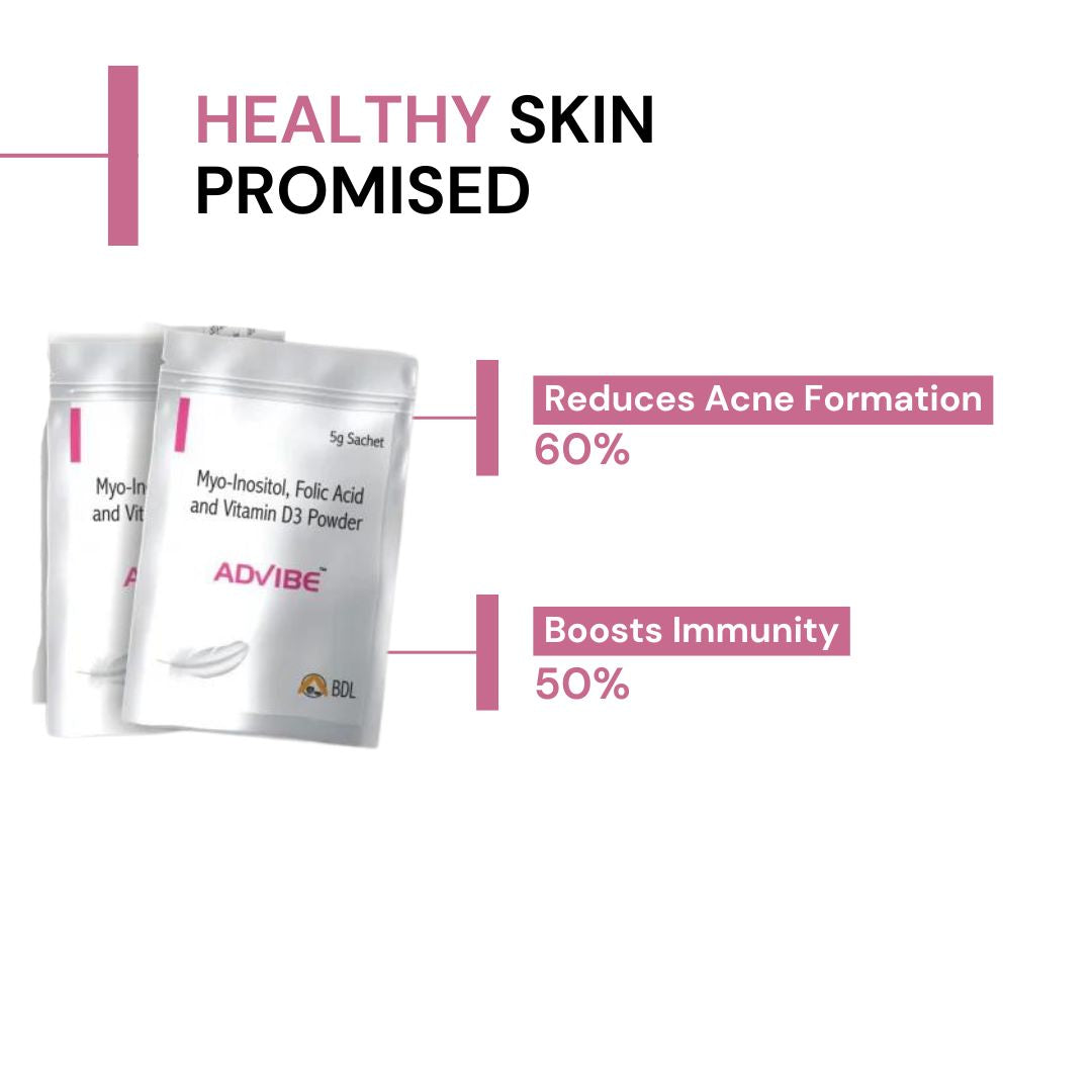 Advibe Sachet 5 gm is a specialized supplement designed to manage and treat Polycystic Ovarian Syndrome (PCOS). This endocrine disorder, common among women of reproductive age, is characterized by menstrual irregularities, infertility, and other metabolic issues. Advibe Sachet 5 gm is formulated with a potent blend of Myo-inositol, Vitamin D3, and Folic Acid, which work together to improve ovulation, regulate insulin sensitivity, and enhance fertility. This sachet is an easy-to-use solution for women dealing with the symptoms of PCOS, offering a holistic approach to managing this condition.