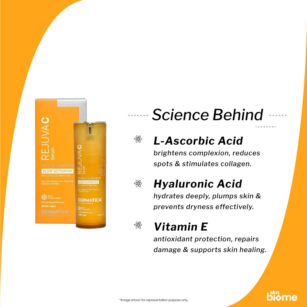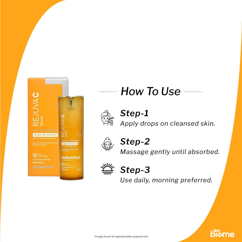 Dermatica Rejuva C is a powerful antioxidant serum formulated with stabilized Vitamin C to brighten dull skin, reduce pigmentation, and promote an even skin tone. Enriched with skin-soothing and hydrating agents, it supports collagen production, fights free radical damage, and enhances skin radiance. Suitable for all skin types, this lightweight serum absorbs quickly, making it ideal for daily use under sunscreen and moisturizer.