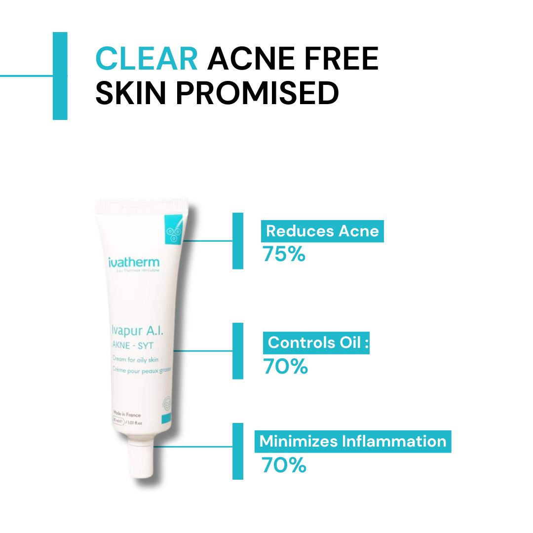 Ivatherm Ivapur A.I AKNE-SYT Cream is enriched with a powerful blend of ingredients designed to target acne-prone skin: