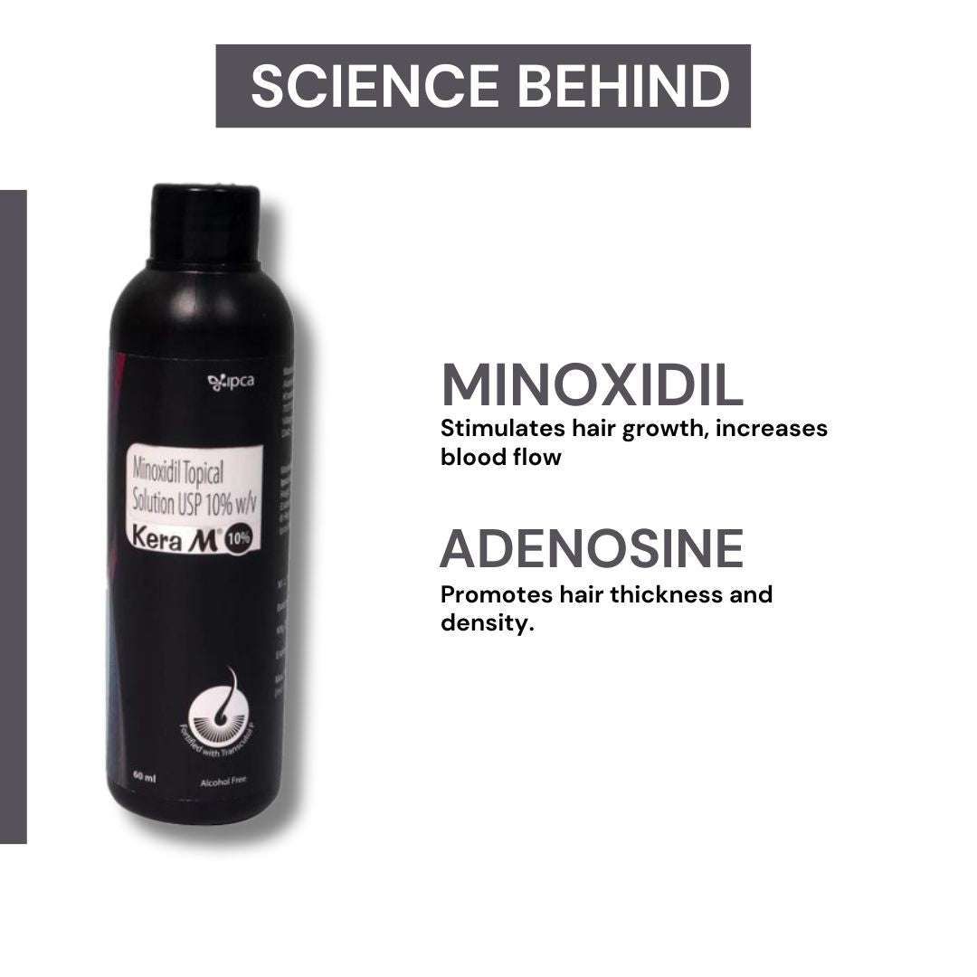 Kera-M 10% Solution Alcohol Free is a potent treatment designed to combat hair loss, specifically male pattern baldness and female pattern hair loss. This topical solution contains Minoxidil, a proven vasodilator that revitalizes hair follicles, promoting hair regrowth and increasing hair density and thickness. By enhancing blood flow to the scalp, Kera-M 10% Solution nourishes hair follicles with essential nutrients and oxygen, helping to prevent hair cell death and encouraging new hair growth. It’s an effective solution for those looking to regain a fuller, more youthful head of hair and boost their confidence.
