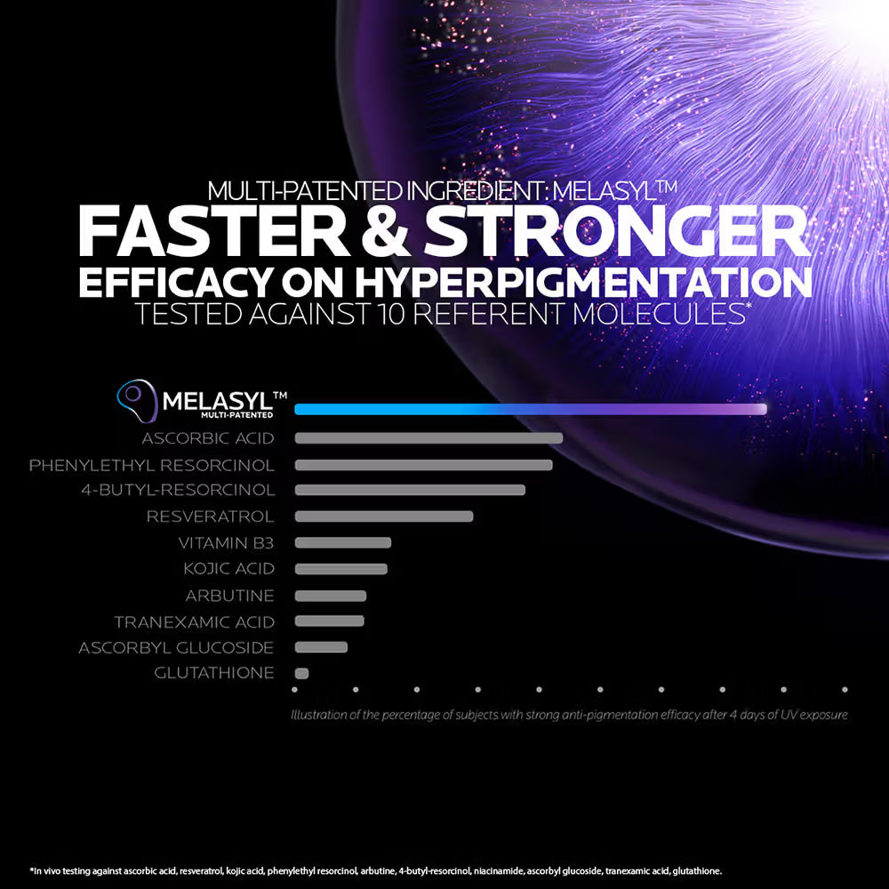 Aqua / Water / Eau, Dimethicone, Niacinamide, Glycerin, Propylene Glycol, Polysilicone-11, Silica, Bis-Peg/Ppg-16/16 Peg/Ppg-16/16 Dimethicone, Cystoseira Tamariscifolia Extract, 2-Mercaptonicotinoyl Glycine, Peg-20 Methyl Glucose Sesquistearate, Sodium Hyaluronate, Sodium Hydroxide, Sodium Thiosulfate, Carnosine, Poloxamer 338, Ammonium Polyacryloyldimethyl Taurate, Dipotassium Glycyrrhizate, Caprylic/Capric Triglyceride, Capryloyl Salicylic Acid, Caprylyl Glycol, Citric Acid, Trisodium Ethylenediamine Disuccinate, Xanthan Gum, Pentylene Glycol, Octyldodecanol, Retinyl Palmitate, Tocopherol, Pentaerythrityl Tetra-Di-T-Butyl Hydroxyhydrocinnamate, Phenoxyethanol, Ci 17200 / Red 33, Parfum / Fragrance, Key Ingredients: Melasyl™, Niacinamide